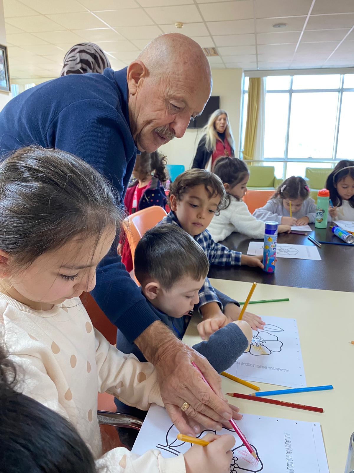 ALKÜ'lü miniklerimizin Alanya Huzurevi'ne gerçekleştirdiği ziyaret, farklı kuşakları bir araya getirerek sevgi ve paylaşım dolu anlara sahne oldu. Ziyaret Anaokulu Müdürümüz Doç. Dr. Didem TÜRKOĞLU ve İktisadi İşletme Müdürümüz Gürol KAYA'nın katılımıyla, 4 ve 5 yaş grubu çocuklarımız, öğretmenlerimiz ve anaokulu personelimizle gerçekleştirildi. Ziyaret boyunca çocuklarımız ve kıymetli büyüklerimiz arasında sıcacık bir bağ kuruldu. Etkinlik; birlikte şarkılar söyleme ve çeşitli sanat etkinlikleri yaparak renklendi. Ayrıca kısa animasyon filmleri birlikte izleyen kıymetli büyüklerimiz ve miniklerimiz, bu anlamlı buluşmayı keyifli bir şekilde tamamladı. Çocuklarımız, büyüklerimizin hayat hikayelerinden öğrenerek empati, saygı ve toplumsal farkındalık gibi değerli kazanımlar elde etti. Büyüklerimiz ise çocuklarımızın enerjisiyle neşelenirken onların dünyasına tanıklık etti. Bu anlamlı buluşma, nesiller arasında unutulmaz bir köprü kurdu.